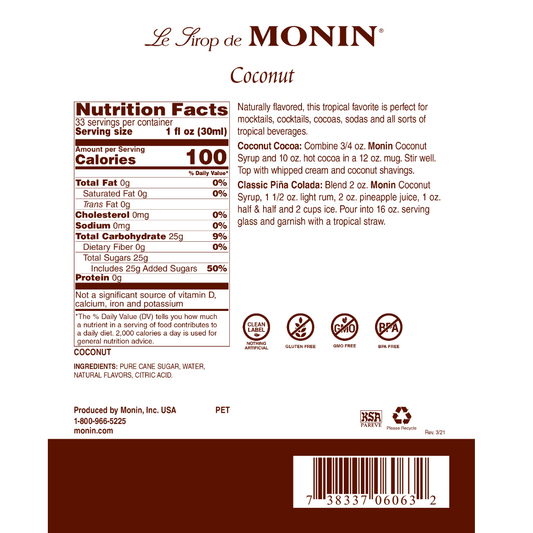 Now more than ever, customers are looking for clean label products that are made without artificial ingredients. True to Monin’s tradition of authenticity, they are committed to providing the best-tasting products made with the highest-quality ingredients that are free from artificial flavors, colors, preservatives and sweeteners.