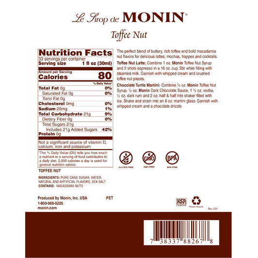 Now more than ever, customers are looking for clean label products that are made without artificial ingredients. True to Monin’s tradition of authenticity, they are committed to providing the best-tasting products made with the highest-quality ingredients that are free from artificial flavors, colors, preservatives and sweeteners.