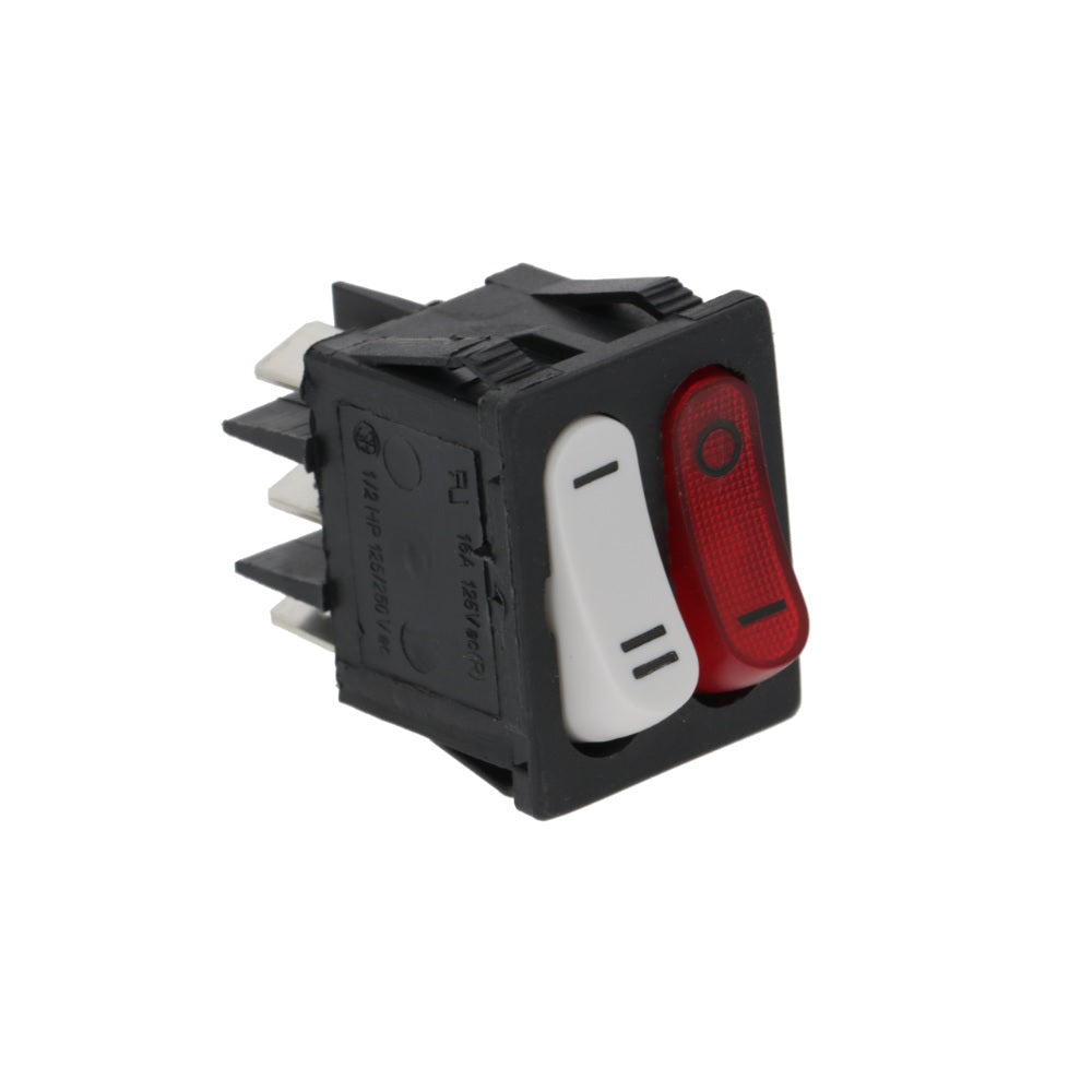 La Pavoni red/white double bipolar switch. 16A 250V. Fits a 22 x 30 mm opening.